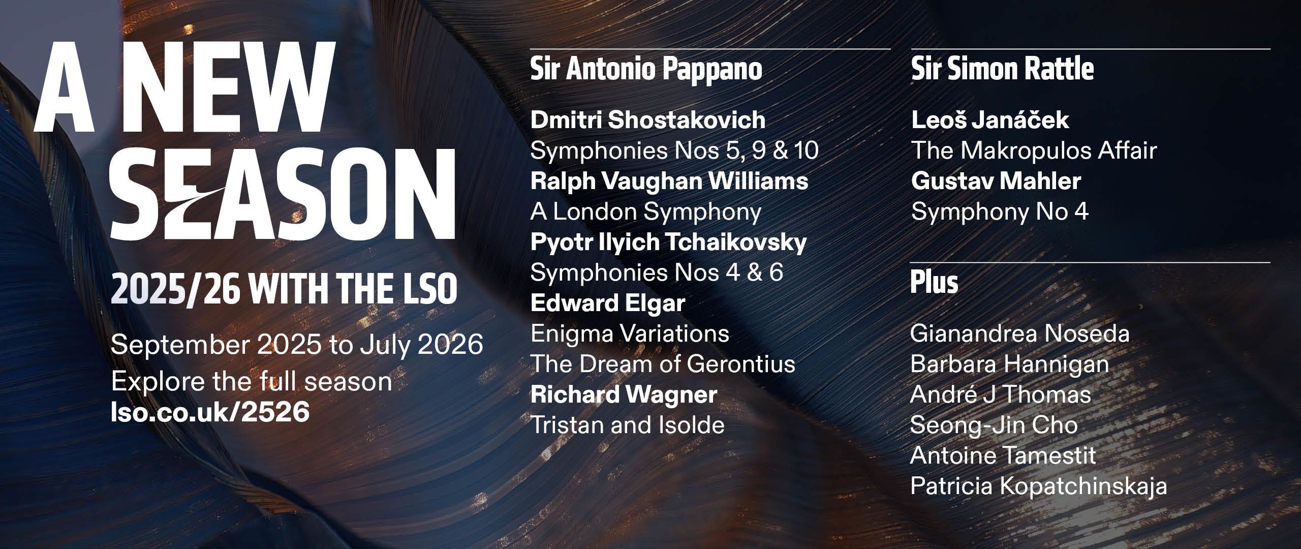 The LSO is funded by Arts Council England in partnership with the City of London Corporation, which also provides the Orchestra’s permanent home at the Barbican.